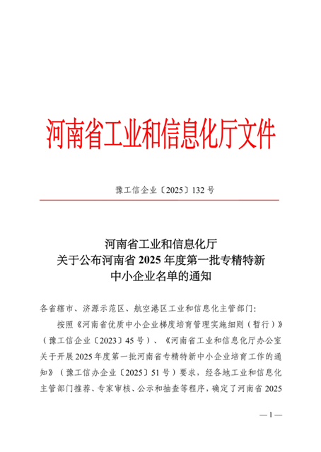 • 建材院獲批“河南省專精特新中小企業(yè)”認(rèn)定 2025-07-03